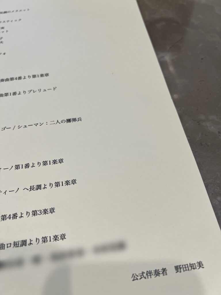 発表会公式伴奏のご依頼 投稿日 2026年3月8日 更新日 2026年3月10日 著者 のだみピアノ教室 カテゴリー ブログ チェロとヴァイオリンの発表会での公式伴奏をご依頼いただき、16名の方の伴奏を務めました。 弦楽器の皆さんは、ピアノ教室ともまた雰囲気が違って新鮮でした🎻🎻皆さん立派な演奏をされていて、私も一人一人の音楽を感じながら楽しく演奏させていただきました。大事な役を任せていただき、本当にありがとうございました🎹✨